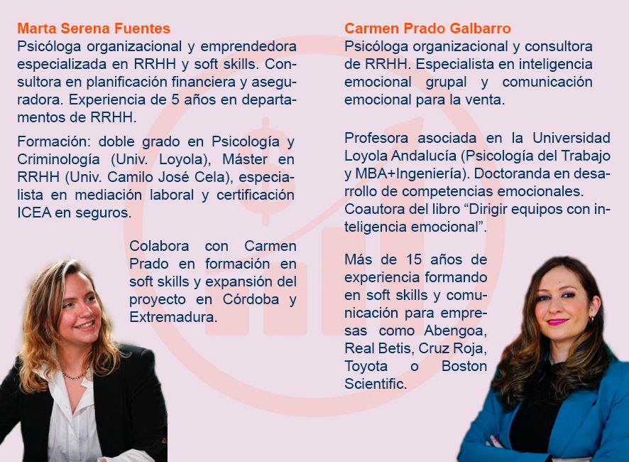 Más de 15 años de experiencia formando en soft skills y comunicación para empresas como Abengoa, Real Betis, Cruz Roja, Toyota o Boston Scientific.