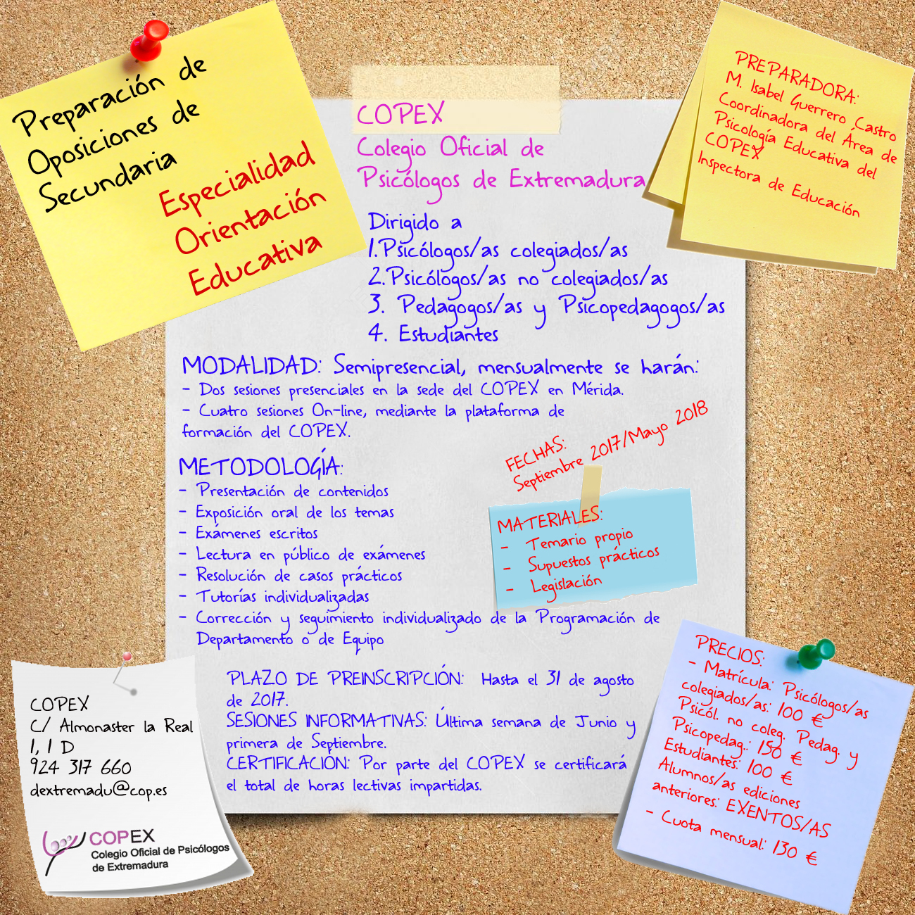 El COPEX acogerá una nueva edición del método preparatorio para oposiciones de Educación Secundaria, especialidad en Orientación Educativa