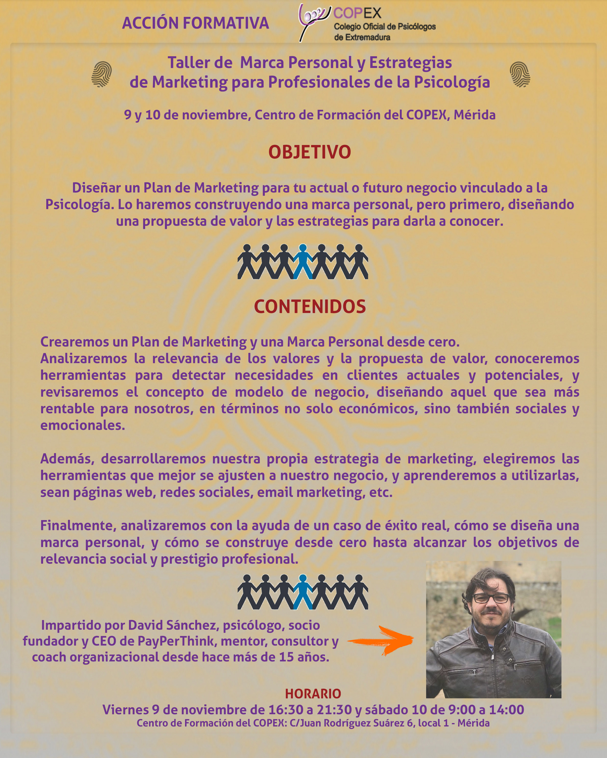 El COPEX impartirá el taller de Marca Personal y Estrategias de Marketing para Profesionales de la Psicología los días 9 y 10 de noviembre